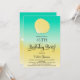 © 2014 Socialite Designs and LICENSORS. Beautiful turquoise / green and yellow-gold colour ombre design invitation with seashell and hibiscus flowers on back. A beautiful beach or tropical-theme birthday party invitation. Flower and shell design may be moved, rotated, resized or deleted. Choose from many different font styles.