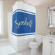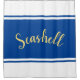 SEASHELL Script Royal Blue White Racing Stripes Shower Curtain