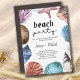 House Warming Beach Party invitation, framed with watercolor seashells and ocean creatures. "beach party" is hand lettered and the remaining wording is fully editable.