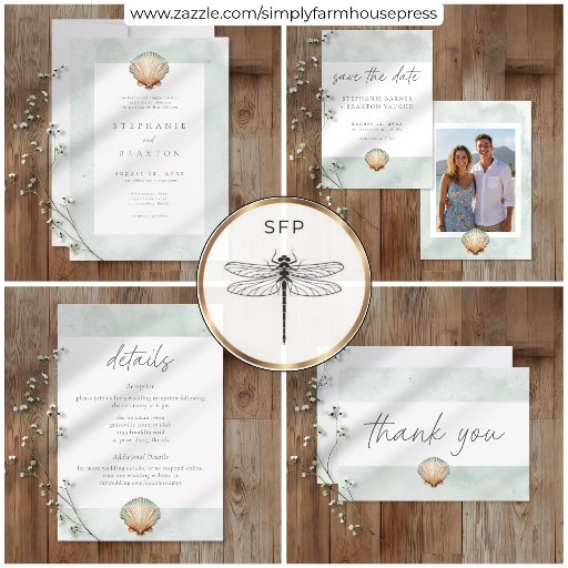 Seashell Watercolor Minimalist Beach WeddingDesigned by Kathe Santillo