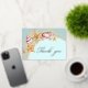 Real gold coloured foil accents the front of this lovely thank you card embellished with colourful seashells and a beautiful aqua coloured background. You can easily update the text to meet your particular needs.