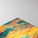 Nature image of some scalloped seashells on a sandy beach. The seashells and sand are coloured a vibrant teal green and rusty orange. Lovely textures and lighting. A delightfully soft and glowing image. Great for beach lovers.