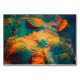 Artistic image of some scalloped seashells on a sandy beach. The seashells and sand are coloured a vibrant teal green and rusty orange. Lovely textures and lighting. A delightfully soft and glowing image. Great for beach lovers.