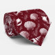 Tie in a a a pattern of seashells and delicate seaweed arranged on a deep maroon red background, creating a striking contrast. The detailed line work adds an intricate and naturalistic feel to the composition.