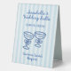 I ordered a number of items from Zazzle and all of them are wonderful. This table tent sign is more durable and professional than I expected. It’s not just a heavy cardboard tent. It has the feel and weight of durable plastic and will make a wonderful keepsake for the new mom! I highly recommend this product. .