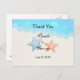 Soft Seashell Beach Wedding Thank You. Great wedding Thank You for beach or destination weddings. Two soft tinted seashells and the beach with more seashells in the water. Matching RSVP, Save The Date, and additional wedding products available.