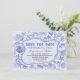 Gorgeous vintage inspired blue save the date cards for tropical beach weddings. Various seashell medley and antique text inside of nautical rope frame, everything completed on the old paper background texture. Please contact me if you need help with customisation or have a custom colour request.