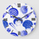 Seashells - cobalt blue on a white background large clock