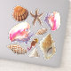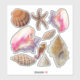 Stickers in the shape of seashells with realistic sea life images. Pink conchs, spotted junonia, sea horse, starfish and others make up an interring collection of beach shells to add to scrap book pages. Or stick them on gift and favour packages, use as envelope seals, or on plain paper packaging. Choose a size.