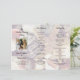 Folded photo template wedding program template with real seashells and starfish background image. Add a photo of the couple to the front panel. Easily customise text in three sections and fold into thirds after purchase. Perfect for a couple getting married on the seacoast. Reverse is solid beach sand tan colour.