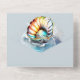 A beautiful design featuring faux sparkling clam and conch shells which have a mother of pearl sheen to them are set against a pale blue background that has oean waves and sea bubbles crashing around it. There are black font templates for your personalised wording and the tear off strip at the bottom has an iridescent pearl lustre look on which a pretty seashell rests. This budget friendly design is ideal for coastal destination, beach theme, tropical and island birthday parties and weddings.
