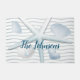 Soft bluish grey starfish, seashells, and an open oyster with a pearl....all over a background of the shadows of overlying ocean waves.