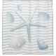 Soft bluish grey starfish, seashells, and an open oyster with a pearl....all over a background of the shadows of overlying ocean waves.