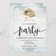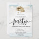 Seashells, sea, string lights, and script. Beautifully save the date that can be customised with your name. Select the "customise" button to change the font style, colour, and size.