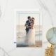 Seashore treasures, flat card beach wedding thank you. Elegant square frame with starfish and sand dollar accented in ocean blue.