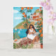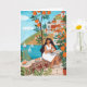Seaside Café Woman Illustration Art Greeting Card
