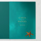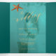 Modern minimalist elegant calligraphy teal turquoise underwater all in one trifold budget summer ocean beach or cruise destination wedding invitation template with 2 photos, scanning QR codes to website for online rsvp and guest details featuring a chic trendy gold sand typography script, a starfish, and ocean green transparent photo overlay. ++++++++++++ Easy to personalise with one or two custom photos (you can upload the same photo on both sides) and your guests information! The invitation is suitable for romantic by the sea, island resort, or ocean stylish weddings.