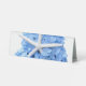 Upscale tented place cards with blue hydrangea flowers and sea star design. Matching the Seaside Garden design line, use these pretty place “cards” to sea guests at a bridal shower. The name template is a handwritten, modern font and will be added to the front of each place holder separately. The light blue flower and starfish is also printed on the back. If budget allows, these would also be pretty for seating wedding guests at a reception or rehearsal dinner.