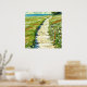 Illustrative artwork of a footpath by the sea alongside grass and flowers. A sun-drenched coastal trail. A charming stone path winds its way through a vibrant meadow bursting with colourful wildflowers – cheerful white daisies, striking red blooms, and touches of yellow and orange. The lush green grass and abundant blossoms create a rich tapestry of nature's beauty. In the distance, the sparkling blue sea stretches out to meet the horizon under a bright, expansive sky, offering a sense of peace and freedom. This piece perfectly captures the joy and serenity of a walk by the water on a beautiful day, making it a perfect addition to bring a breath of fresh air and colour into your room. This artwork can be customised, printed, and or downloaded.