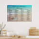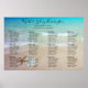 Seating chart for couples getting married on the seacoast. Tropical blue water, beach sand and a sea star and sand dollar are the background for listing tables by number. This template can hold up to 96 lines for guests’ names, with 8 lines listed beneath 12 tables. If couples are listed together, that will seat more. Customize as you wish. Remove table text to reduce the number. Other sizes can be chosen, but some - like the largest sizes - will not work.