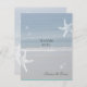 Ocean beach thank you card. Starfish decorate this seaside view to use as a wedding thank you or for any event. The front has a template line for adding names and reverse lets you customise with a personal message, or delete the text to leave it blank. Small, flat cards will come with white envelopes.