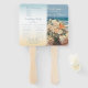 A wedding program hand-fan featuring a coastal theme, adorned with a bride's flower bouquet embellished with exquisite starfish, showcasing a harmonious combination of beige, orange, and blue roses. The design exudes an artistic flair, reminiscent of an oil painting, lending the card a distinct style that is both sophisticated and elegant. This unique and special card design is crafted exclusively for a special bride. The entire set of design cards is accessible in the same design.