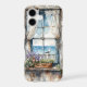 Capture the charm of coastal living with this tranquil watercolor design, featuring a weathered window framed by soft lace curtains that gently part to reveal a peaceful seaside view. A seagull rests quietly on the windowsill railing, gazing out toward calm ocean waves under a serene sky. The window box overflows with blooming lavender, ivy, and pink blossoms, adding a burst of color and life to the composition. Subtle textures in the aged wall and wooden frame enhance the rustic cottage aesthetic, while the soft, fluid brushwork evokes a dreamy, romantic feel. Perfect for those who love cozy beach houses, vintage decor, or serene nature scenes, this artwork brings a quiet coastal atmosphere into any space. Inspired by slow mornings by the sea, this design invites reflection and relaxation. AI generated artwork.