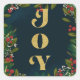 Spread festive cheer with this beautiful "JOY" square sticker featuring elegant gold lettering surrounded by a classic Christmas wreath design with red berries and green foliage. Perfect for holiday cards, gifts, and decorations.