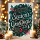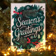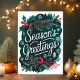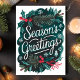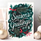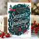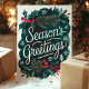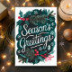 Send warm wishes with this beautifully designed Season’s Greetings card featuring a festive watercolor composition of holly, pine branches, and red berries. The rich green backdrop and delicate snowflakes add a timeless touch to this classic holiday card, perfect for spreading cheer to friends and loved ones.