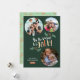 "Tis the season to be jolly" written in hand-lettered brush calligraphy on a green background + fun circle frames for your best family photos. Add your names for a personal touch. Original design by Kitty Pie Press.
