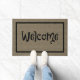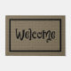 Large door mat featuring a digital burlap design, and the word Welcome in black fun and whimsical Halloween / Autumn lettering. From Heard_.