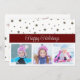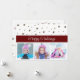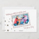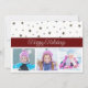 Replace the photos in this greeting card with your own favourite photos to make it your own! You can also change the front card greeting from “Happy Holidays” to “Merry Christmas”, “Season’s Greetings” or your own text. The back is also customisable and allows you to go with current “Wishing you all the best of the season” or update to your own text, as well as replace the back photo and the sign-off to that of your own. Highlighted on the front with a deep dark red band to make the greeting stand out with a sprinkling of stars above it. See more stars on the back leading to the back photo.