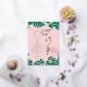 Seasonal Joy Pink Santa Flamingo Tropical Green Palm Leaves Gold Foil Holiday Card.