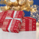 Christmas colours red and nearly white, makes a nice and traditional combination. Ornamental strings printed in very light brown, appearing as white, on a bright red background. The default greeting is "Happy Christmas", but you can adjust it in any way you like. Text can easily be customised, and you can even remove the greeting for a cleaner result. Background colour can be adjusted, too!