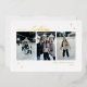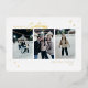 Modern Season's Greetings Gold Foil Typography, 3 photo holiday card. Features, gold foil stars and solid green colour backing with template space for your personal holiday message.