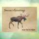 A "vintage look" digital painting of a bull moose (Alces alces) superimposed on an old paper or parchment background image. Text reading "Season's Greetings" also appears. Add your own additional text.