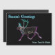 A bright, neon-like rendering of a caribou, also known as a reindeer. "Season's Greetings" appears in glowing blue and white. Add your own additional text. Inspired by the Northern Lights.