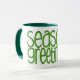 A hand drawn digital text design saying Season’s Greetings in green, to wish family, friends or corporate partners and clients a Merry Christmas, Happy New Year and best wishes for the coming festive season!