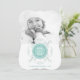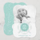 Season's Greetings, Holiday Wishes, Happy New Year Full Circle Greetings Typography On Aqua Blue And White Vintage Ornate Classic Seal Holiday Photo Card.