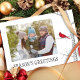 Simple red cardinal sitting on a white winter birch tree in the quiet solitude of winter. A beautiful Modern Christmas photo card. This design depicts the beauty of a winter bird in a woodland forest. Wish you and yours a Happy Holiday with this modern design. This design features Christmas holiday winter red cardinal, photo family picture 2 two, elegant simple minimalist red cardinal, season's greeting photo Christmas card, modern simple typography, nature red bird birch tree, winter birch tree branch, Christmas holiday photo greeting card, botanical woods woodland forest, rustic birch wood tree a rustic budget postcard.