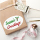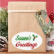 Seasons Greetings Holly Christmas red green script Oval Sticker