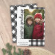 Season's Greetings Photo White Black Buffalo Plaid Holiday Card