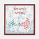 Adorable picture of two polar bears wearing scarves with a snowflake background is featured on this magnet. With message, "Season's Greetings" this little magnet would make a great stocking stuffer or use it to decorate for the holidays!