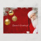The image depicts Santa peeking around the wall with garland hanging above him and gold ornaments hanging from there for a Christmas card!