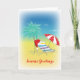 Whimsical colourful Red Santa Hat, Palm Tree, Beach Chair and Umbrella Illustration by Inge Lewis. This card will bring a smile to anyone. You can customise this card with your own text by clicking on the "Customise Button". Find more matching items at the ingeinc.com store.