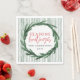 Seasons greetings watercolor wreath + stripe napkin