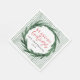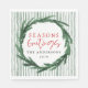 Seasons greetings watercolor wreath + stripe Christmas napkins.