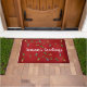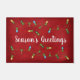 Colourful string of Christmas lights on red with Christmas Season's Greetings text.