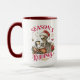 A festive and cheerful Christmas holiday design showcases a skeleton wearing a Santa hat, reading a book, and holding a steaming cup of coffee. Surrounding him are poinsettias, holly berries, and pine tree branches. The colourful text says: "Season's Readings." This design is available on a variety of products, making it the perfect gift for book lovers.