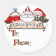 Adorable snowmen with santa holding seasons greeting sign. Decorate your gifts with this gift tag